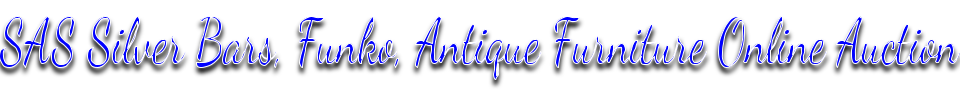 SAS Silver Bars, Funko, Antique Furniture Online Auction BIDDING NOW! Lots Start Closing 5:30 PM Fri. Dec. 26th. Preview: Online or in person Tues - Sat, 9:AM-5:30PM, must know what auction, lot numbers & items you would like to preview. Payment Methods: Credit Cards on file will be run after the close of the auction. Buyer's Premium: 20% Shipping: Sound Auction Service will provide shipping on most smaller items with appropriate handling charge. We will use USPS Flat Rate, FedEx Home Delivery or Media Mail. Fragile items, including framed art, china, porcelain or glass, should be consulted prior to purchase. Most larger items and fragile items can be handled by Pack & Ship in Lacey, WA upon request, Phone: 360-923-9551. Credit cards on file will be billed for shipping and handling. Tracking information will be emailed to the email on file. To obtain shipping you must email your request to cory@soundauctionservice.com, click on the “Contact Us” tab or reply to invoice email. Delivery: Can be arranged through American Moving Company. Contact Neil Radford at Phone: 206-747-3611, Website: AmericanMovingCompany.net. Freight: Large items can be shipped through Sweetwater Transport LLC. Phone: 360-233-2100. Removal: Please check in at main building first when picking up your items. All items will be brought to you at the door. Pick up times for this auction are Sat. 12/27, Tues. 12/30, Wed. 12/31, Thur. 01/01, 9:AM-5:30PM. Always closed Sundays & Mondays. All items must be removed no later than 5:30 pm (PT) on Thur. 01/01. All items that are not picked up during allotted pick-up period will be forfeited!!! |